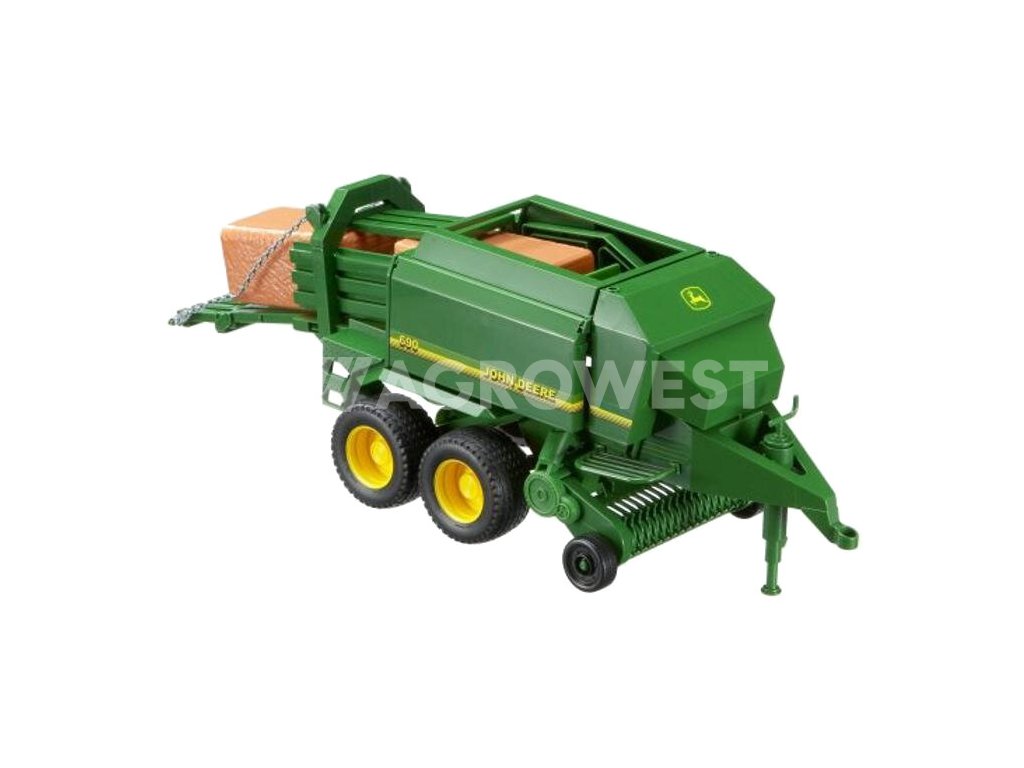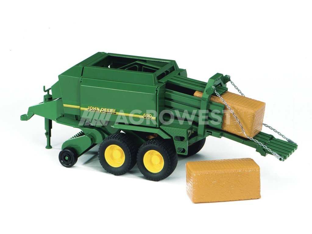 Do detailů propracovaný model balíkovače John Deere je skvělý doplněk na farmu Vaší ratolesti. Balíkovač lze připojit k jakémukoli traktoru z edice Bruder Profi, během jízdy je pak plně funkční - disponuje poháněným sběračem slámy a dva balíky jsou za jízdy transportovány z lisu ven. Balíkovač dále nabízí sklápěcí opěrnou nohu, otevírací skříňku na provázky a otevírací kryt lisovací mechaniky.