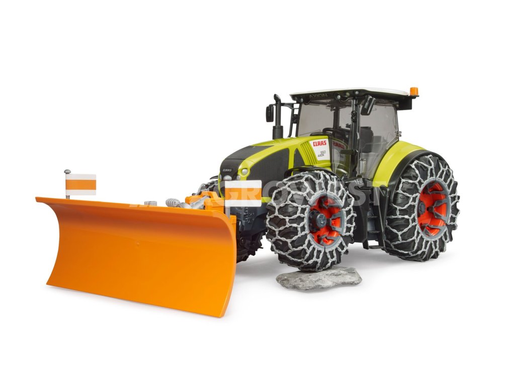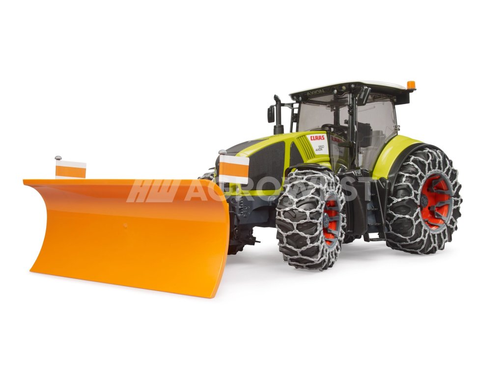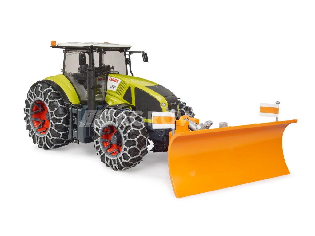 Claas Axion 950 se sněhovými řetězy a radlicí - Bruder 3018