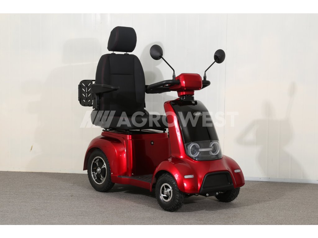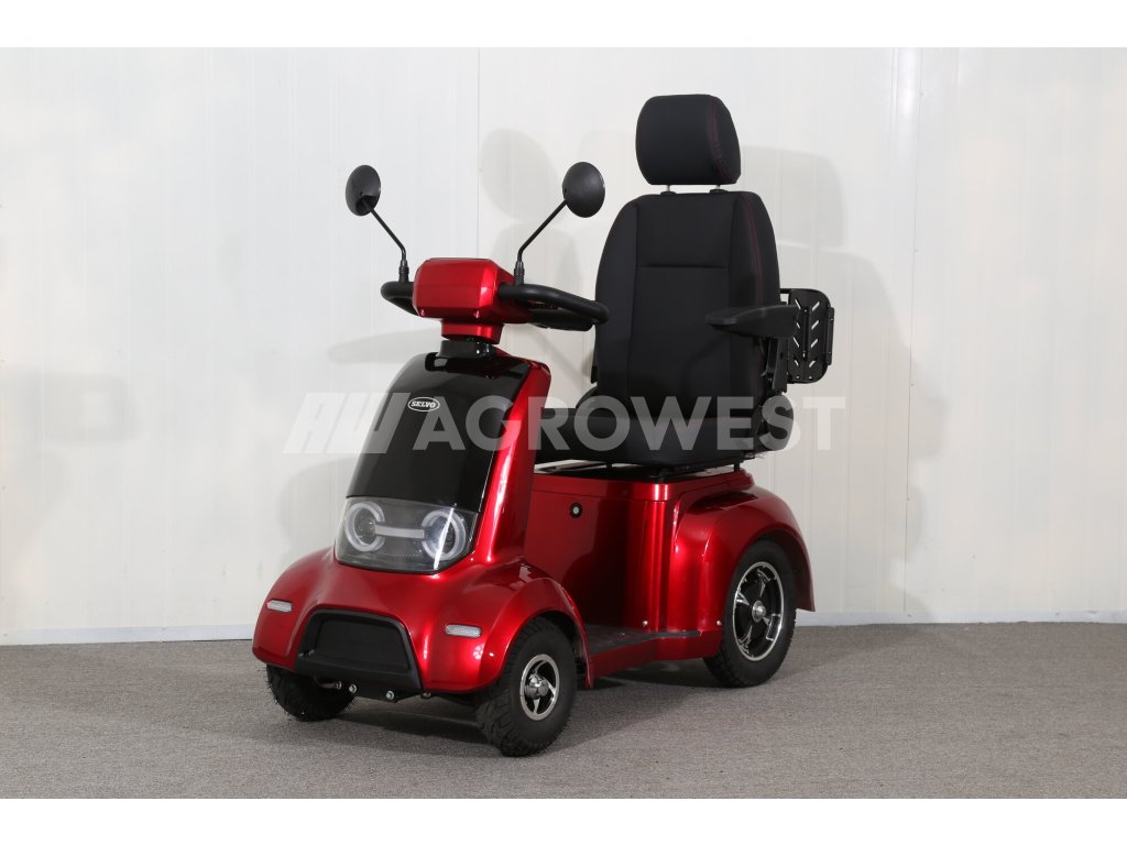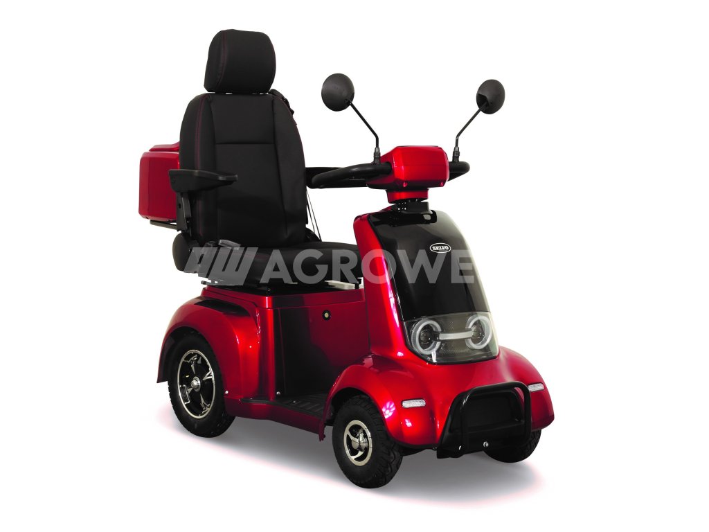 Tento invalidní elektrovozík je uzpůsoben pro potřeby osob se zhoršeným zdravotním stavem. Pomocí páček na řidítkách velmi jednoduše volíte rychlost pojezdu, dále máte možnost max. rychlost omezit kolečkem (potenciometrem). Tento model umožňuje dokoupení řady různého příslušenství jako je přední košík, zadní box nebo zadní skládací koš. K dispozici jsou také ocelové nárazníky, které velmi doporučujeme k ochraně plastů. Případně se může hodit také držák francouzských holí a krycí plachta. Polohovatelné sedadlo tvoří pohodlnou oporu celých zad. Loketní opěrky po obou stranách pomáhají ještě vyššímu komfortu.