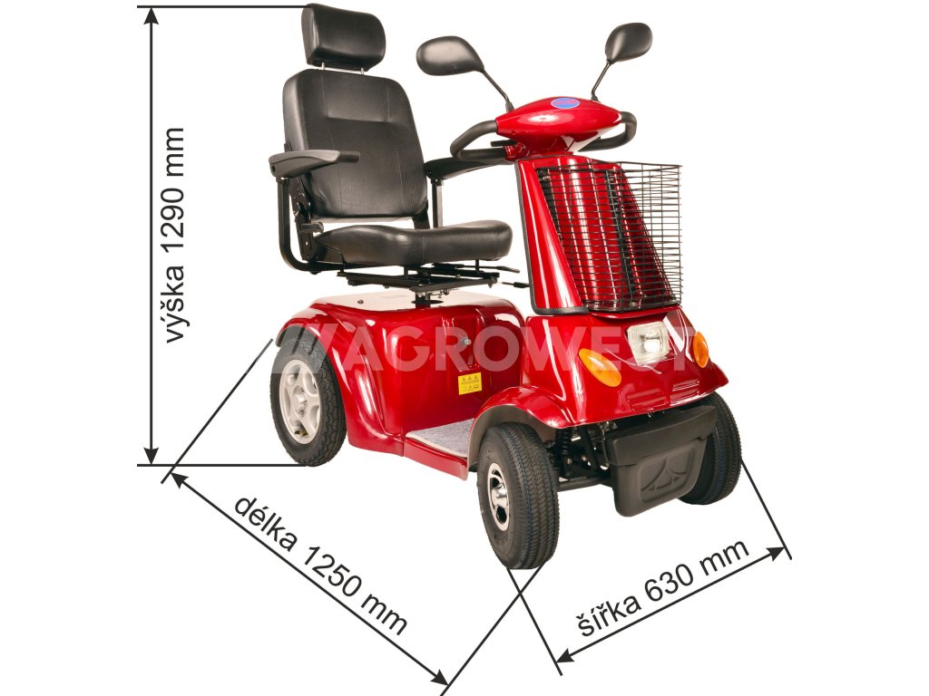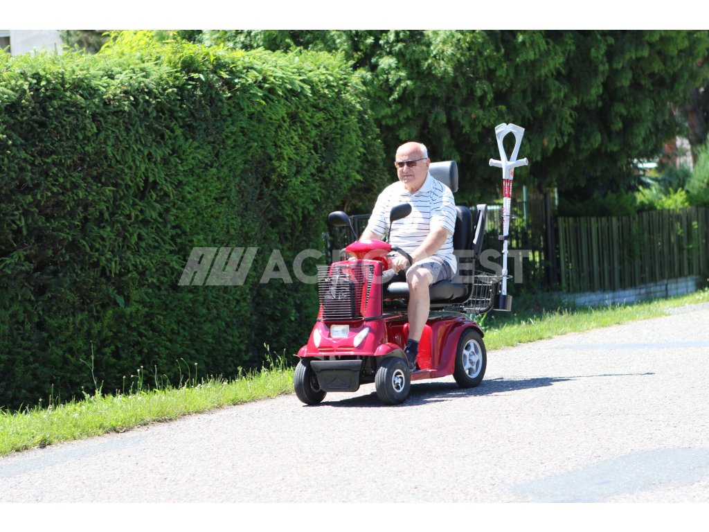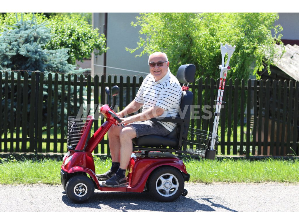 Tento invalidní elektrovozík je uzpůsoben pro potřeby osob se zhoršeným zdravotním stavem. Pomocí páček na řidítkách velmi jednoduše volíte rychlost pojezdu, dále máte možnost max. rychlost omezit kolečkem (potenciometrem). Tento model nabídne úložný prostor v nákupním koši na řidítkách a velice snadnou možnost nasedání, díky otočnému a polohovatelnému sedadlu, které tvoří pohodlnou oporu celých zad. Loketní opěrky po obou stranách pomáhají ještě vyššímu komfortu.
