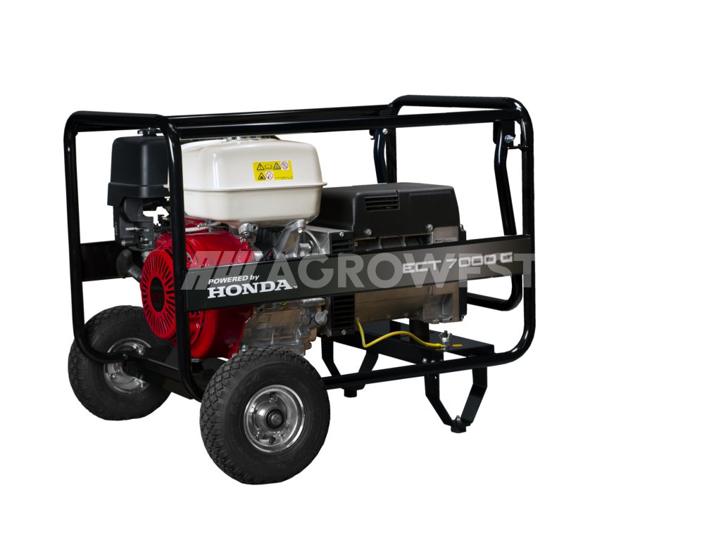 Elektrocentrála ECT 7000G: model velké, třífázové elektrocentrály s regulací výstupu indukčním trafem. Výkonný a vysoce odolný alternátor pohání spolehlivý profesionální motor řady GX s dlouhou životností a to vše ukotveno v pevném a odolném ocelovém rámu.
