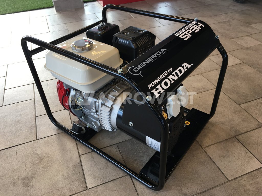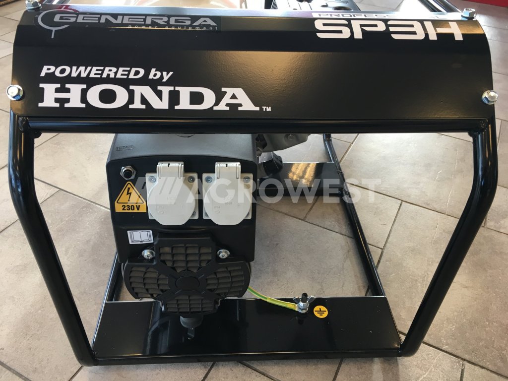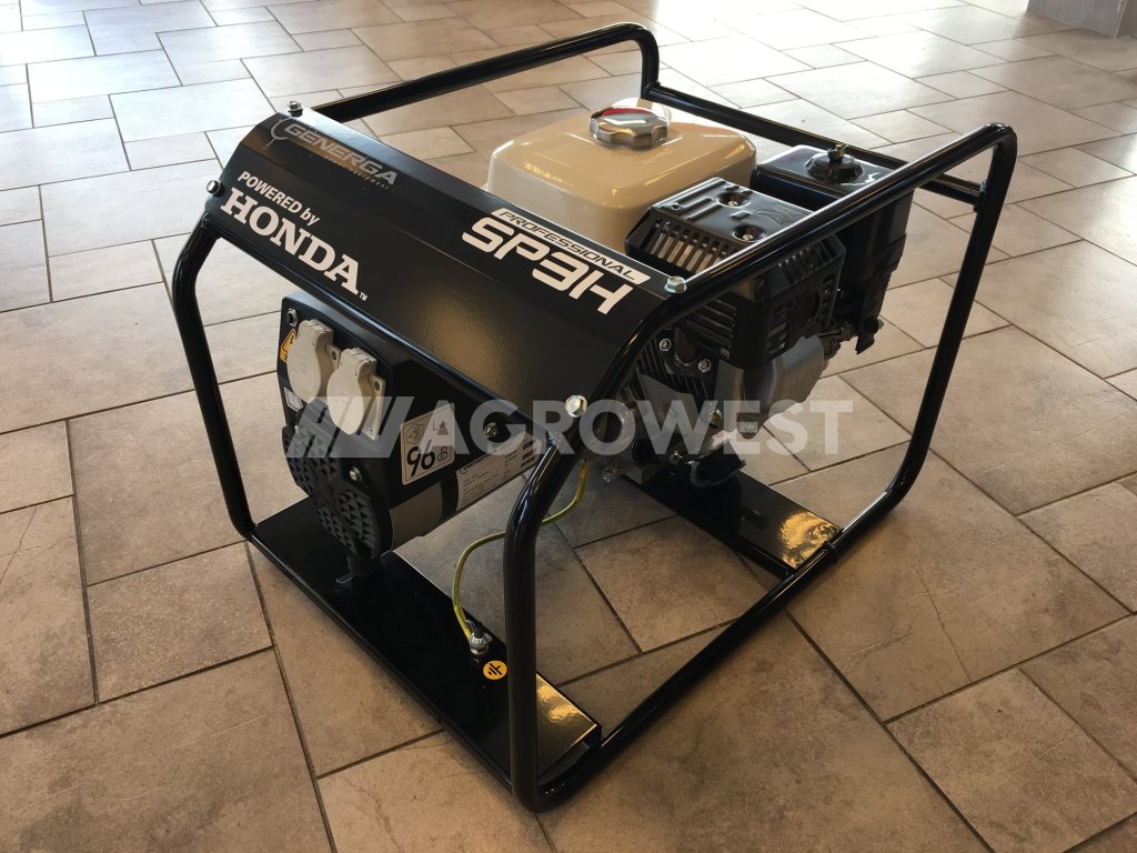 Elektrocentrála SP 3 H: základní model jednofázových rámových elektrocentrál s regulací výstupu kondenzátorem. Výkonný alternátor pohání profesionální motor řady GX s lehkým startem.