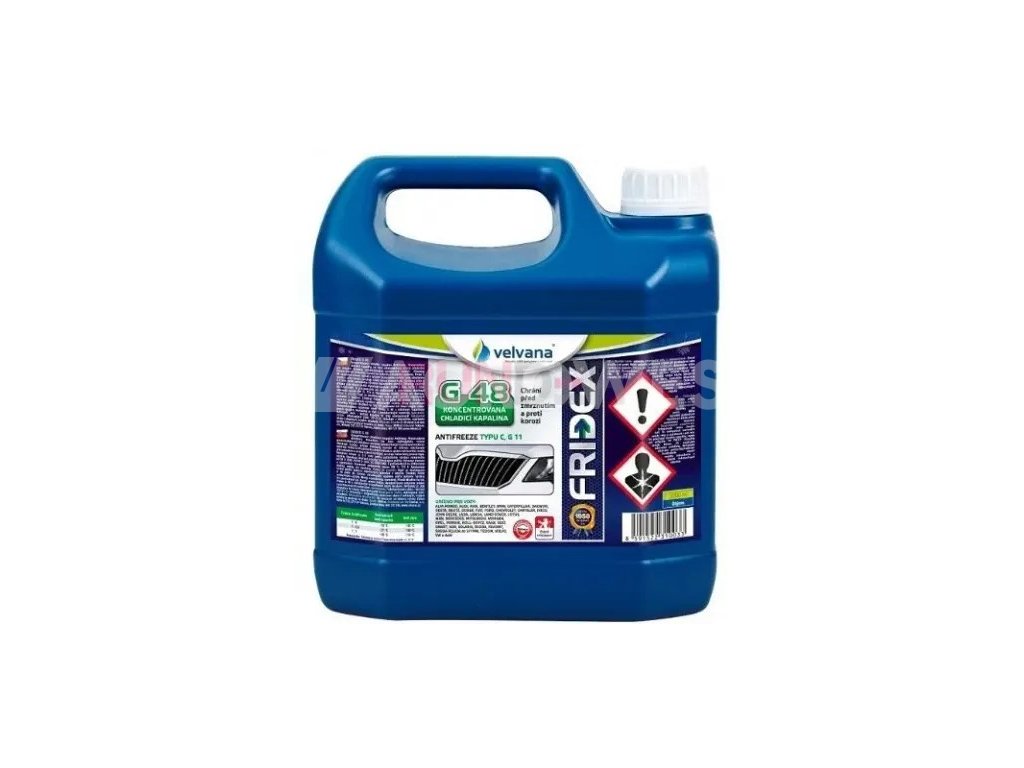 Koncentrovaná chladicí kapalina na bázi ethylenglykolu, obsahuje vysoce účinné inhibitoři koroze pro ochranu chladicího systému. Výměnná doba je 2 - 3 roky (dle doporučení výrobce motoru. vozidla). Chladicí kapalina FRIDEX® G 48 je mísitelná a plně identická s originální chladící kapalinou Škoda G 11.Produkt je certifikován akreditovanou zkušební laboratoří 1152.1.