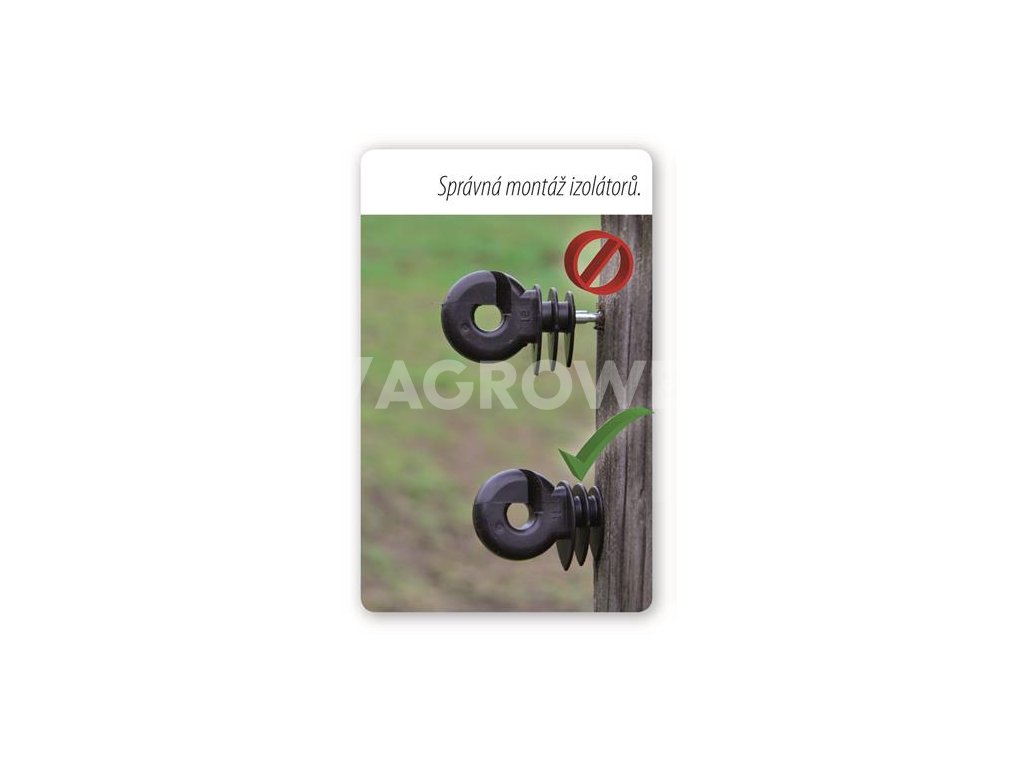 Izolátor zašroubujte celou plochou vrutu až po plastovou část. Při nedostatečném zašroubování hrozí jeho vypadnutí nebo větší míra namáhání izolátoru.