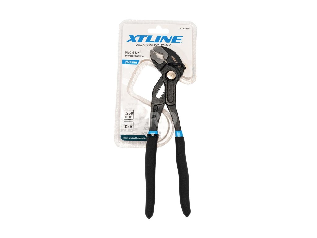 Rychlostavitelné SIKO kleště z řady XTLINE s automatickou západkou, která umožňuje nastavení požadované rozpětí čelistí jednou rukou. Konstrukce čelistí snižuje prokluz a úsilí nutné k práci. Kalená CrV ocel s fosfátováním velice odolná proti korozi. Dvouvrstvá pogumovaná rukojeť minimalizuje poranění. Mechanismus posuvu čelistí pomocí jemných zubů.