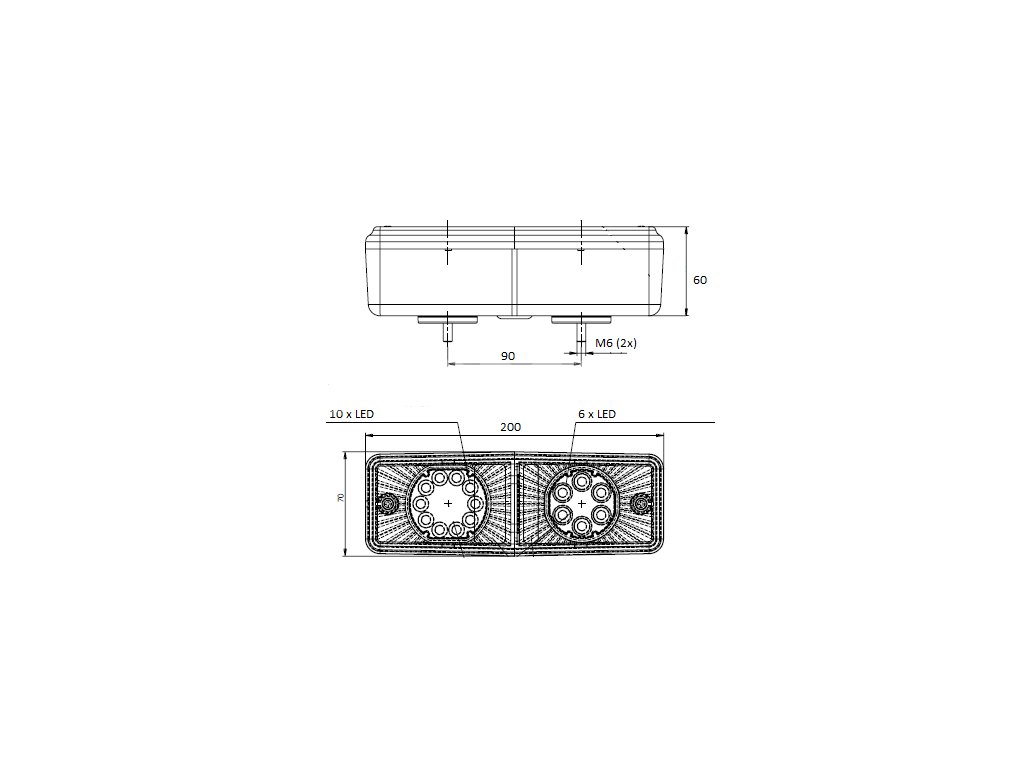 Led zadní skupinová svítilna 9-33V P/L + kabel