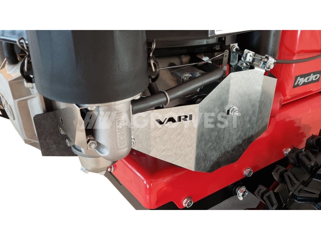Motor KOHLER COMMAND PRO CV224, kterým je osazen RAPTOR Hydro, se vyznačuje především vysokým krouticím momentem, litinovou vložkou válce, olejovým čerpadlem a filtrem a plnohodnotným tlakovým mazáním. Čtyřstupňový cyklonický vzduchový filtr zajišťuje přísun čistého vzduchu do sání, což je velká výhoda jak při sekání vysoké trávy, obracení sena i zametání. Techničtí znalci jej jistě ocení. Motor je také vybaven palivovým čerpadlem, které zajišťuje dopravu paliva z nádrží do karburátoru především v extrémních svazích a náklonech. Díky tomu jsou maximálně využity obě palivové nádrže, které dávají dohromady objem cca. 6 l. Robustní celoplošný kryt kulisy karburátoru zase bezpečně chrání citlivá ovládací táhla karburace a zátěžového regulátoru, palivový kohout, hadičky a kabeláž, aby nedošlo k poškození při provozu v těžkých podmínkách, např. při sekání pod stromy.