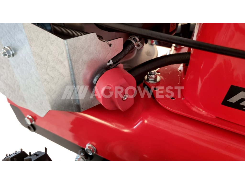 Výhodou hydrostatické převodovky je možnost plynulé změny rychlosti a směru pojezdu stroje během práce, kdy nemusíte vypínat pohon aktivního příslušenství – vpřed i vzad bez ohledu na otáčky motoru. Stroj se tak dobře přizpůsobí podmínkám a rychlosti chůze obsluhy. Diferenciál v převodovce zajišťuje snadné řízení a vedení stroje. Převodovka je navíc vybavena automatickou uzávěrkou diferenciálu, která v případě prokluzu jednoho kola sepne a přenese výkon na obě kola. Díky tomu se stroj zvládne pohybovat i ve velmi náročném terénu. O plynulý rozběh příslušenství a zároveň i jeho bezpečné okamžité zastavení se stará patentovaná rozběhová spojka s brzdou NORAM-VARI. Toto řešení má velký vliv na živostnost pohonu příslušenství i komfort jeho obsluhy. Raptor je vybaven přídavnou nádrží, která zvyšuje celkový objem paliva na 5,9 litru, což výrazně zvyšuje jeho akční rádius a dobu práce bez nutnosti doplňovat palivo.