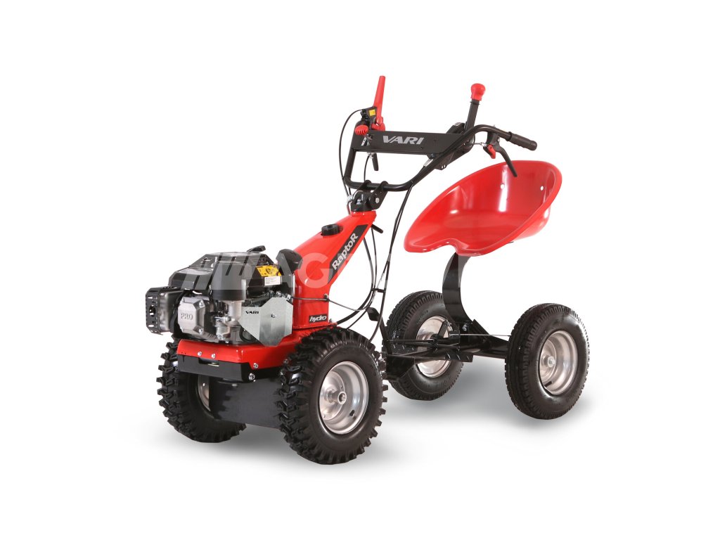 RAPTOR Hydro je multifunkční nosič adaptérů, který lze díky široké škále příslušenství používat po celý rok. RAPTOR Hydro je navržen především tak, aby dobře padl do ruky a pohodlně se s ním pracovalo. Ergonomie a dobré vyvážení stroje byly při vývoji prioritou. Vybaven je silným čtyřtaktním motorem KOHLER COMMAND PRO CV224, hydrostatickou převodovkou, automatickou uzávěrkou diferenciálu a rozběhovou spojkou a brzdou NORAM – VARI.