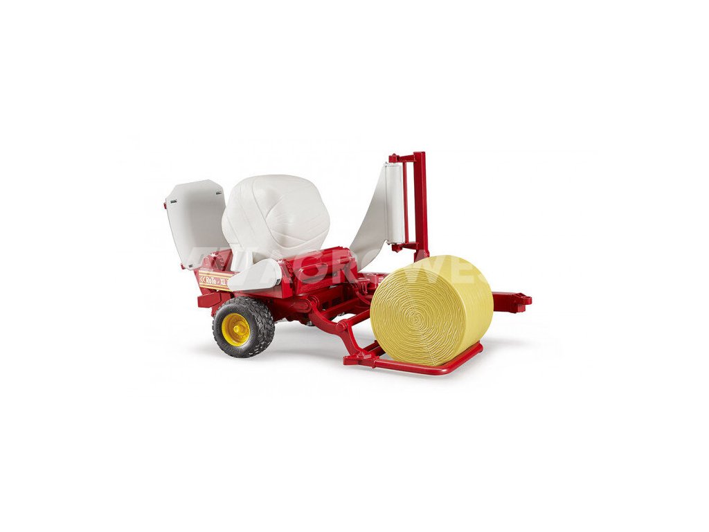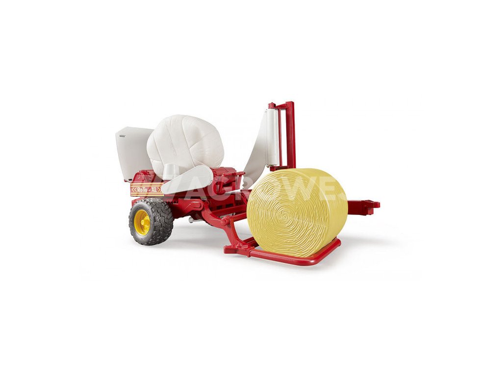 Obalovač balíků jistě ocení každý malý zemědělec, pro něhož se stane praktickým pomocníkem. Tento jedinečný model lze připojit ke všem traktorům Bruder Profi, kompatibilní je i s lisem na kulaté balíky. Disponuje nakládacím ramenem, které balík přesune do otočného talíře, odkud je následně transportován do vykládacího ramene. Pokud obalovač připojíte k traktoru, můžete využívat i nastavitelnou oj.