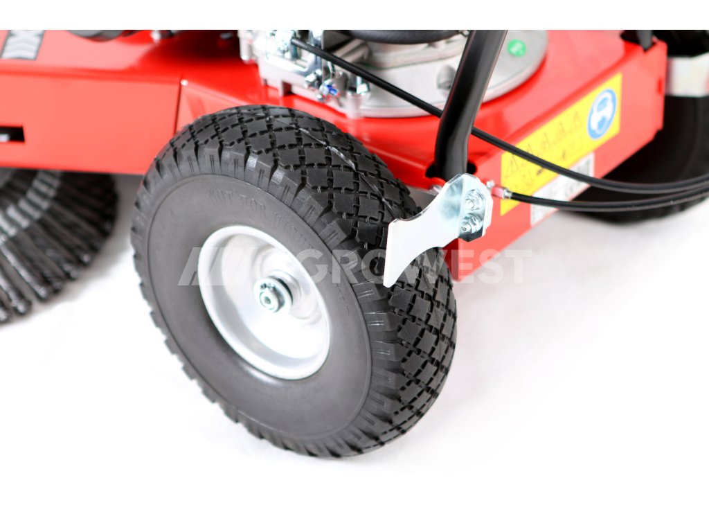 Ocelový kartáč B-35B Vedex má široká nepropíchnutelná plnopryžová kola s výbornou adhezí a tlumením, 5 poloh nastavení kol, upravené závěsy kol pro lepší manipulaci okolo obrubníku, inovovaný tvar škrabky pro lepší čistění, nové napínání kladky řemene a oko pro uchycení při přepravě.