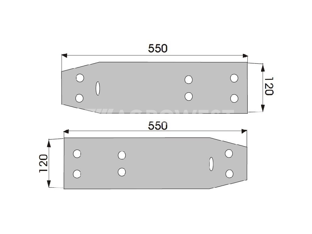 Plaz dlouhý otočný levý na pluh RabeWerk typ WP 351 WL 550 x 120 mm výrobce Agropa Group - opotřebitelný náhradní díl na pluh Rabe referenční číslo WP351WL, 27510305.
