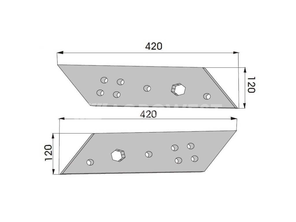 Plaz levý na pluh Vogel a Noot UN 420 x 120 mm - opotřebitelný náhradní díl pro pluhy Vogel a Noot referenční číslo PK803501, PK8.035.01. Výrobce Agropa Group.