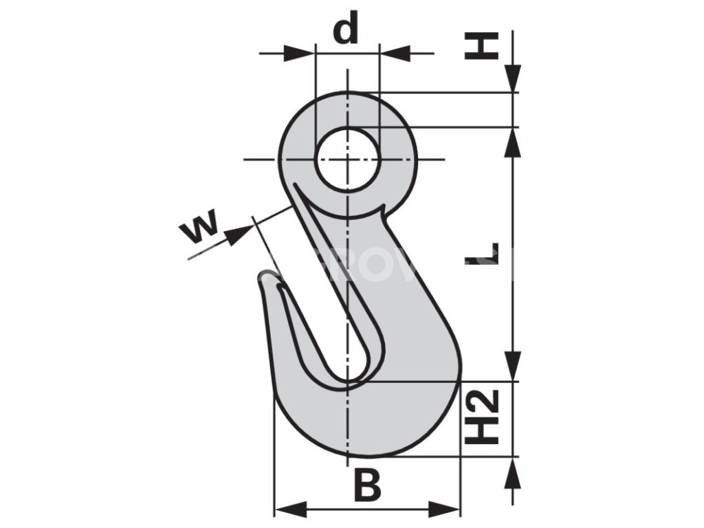 Řetězový hák vyrobený z pozinkované oceli s pevným okem.