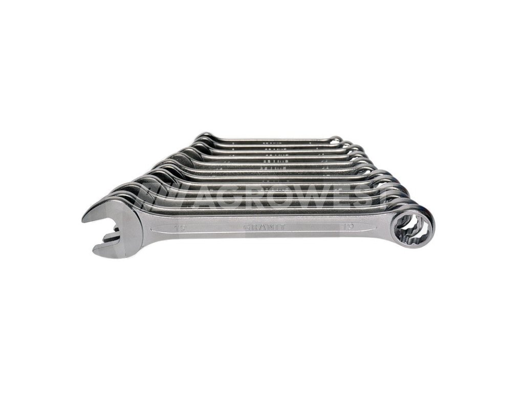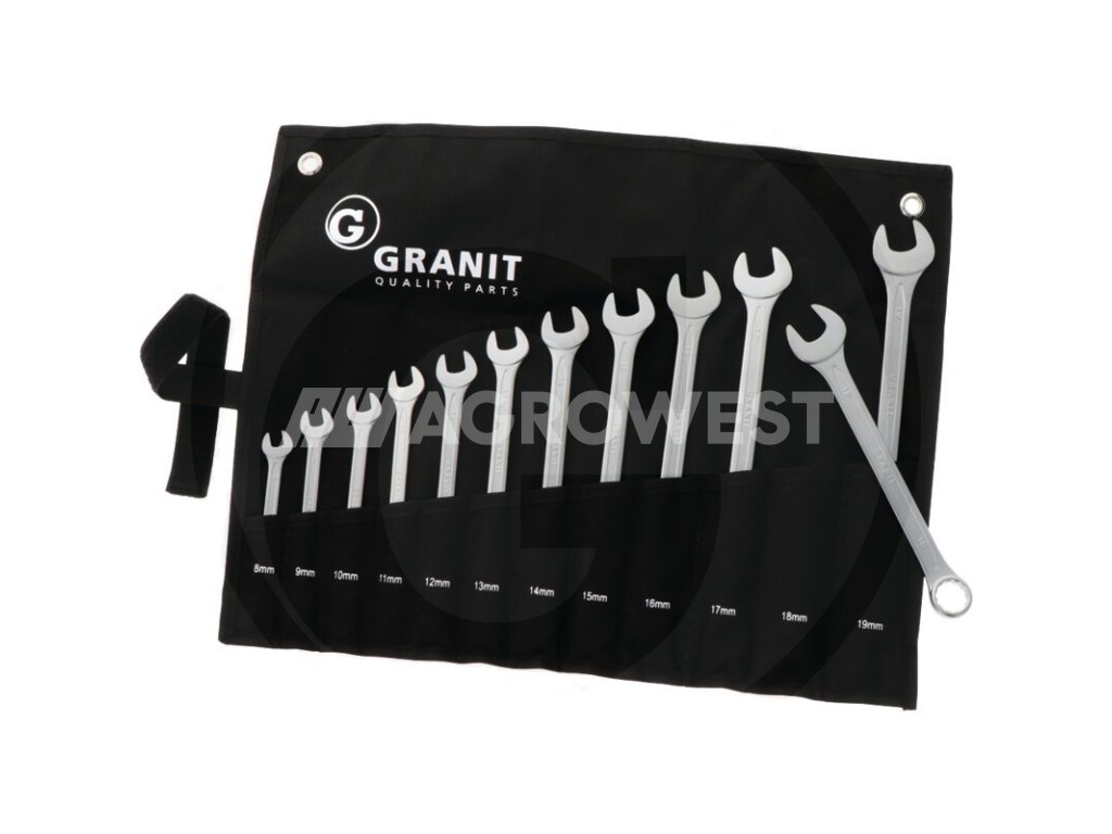 Sada očkoploché klíče Granit BLACK EDITION 12-dílná 8 až 19 mm srolovatelné pouzdro - sada očkoplochých klíčů pro použití v profesionálních dílnách, SW 8, 9, 10, 11, 12, 13, 14, 15, 16, 17, 18, 19 mm. Očkoploché klíče jsou vyrobeny z kvalitní chrom vanadové CrV oceli.