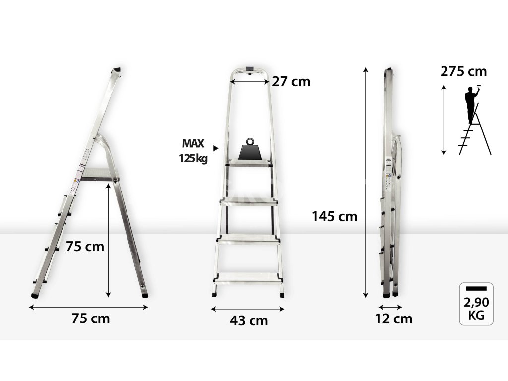 - Výška schůdků: 1,45 m