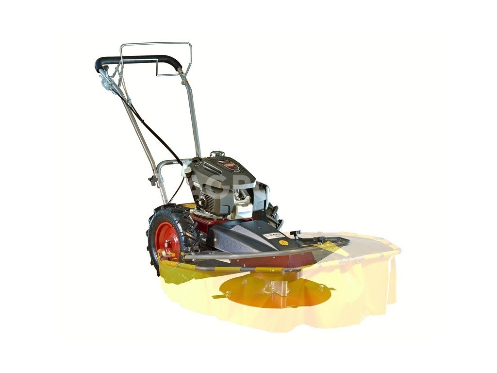 Dvojitý talíř - celoplošný podběh, záběr sečení 60 cm; motor HONDA GCVx 201cm3; dvě rychlosti vpřed. Dělená náprava s funkcí jednoduché uzávěrky a diferenciálu. Kompletní kryt v ceně stroje.
