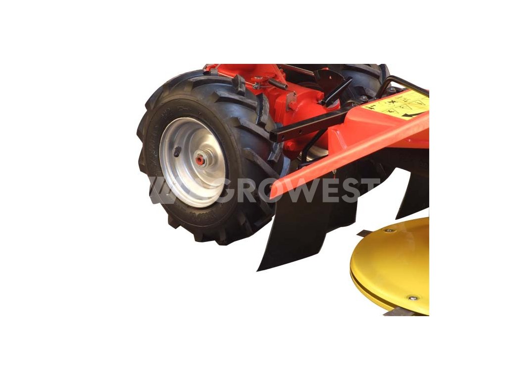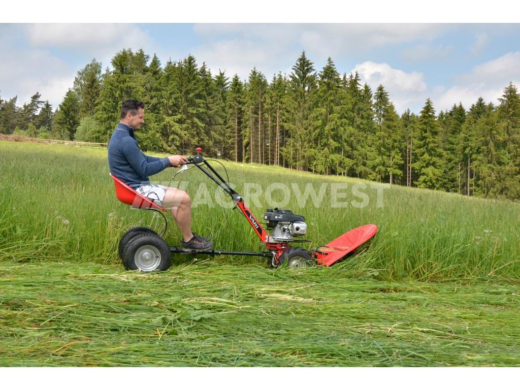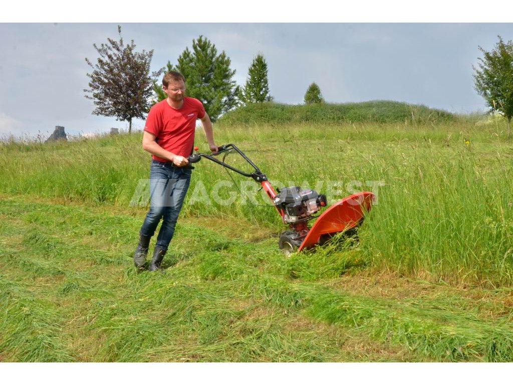 Sečená tráva je pomocí disku rozmetána a připravena k sušení, při použití boční zástěry ponechána v řádku pro lepší sběr.