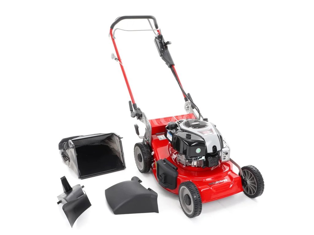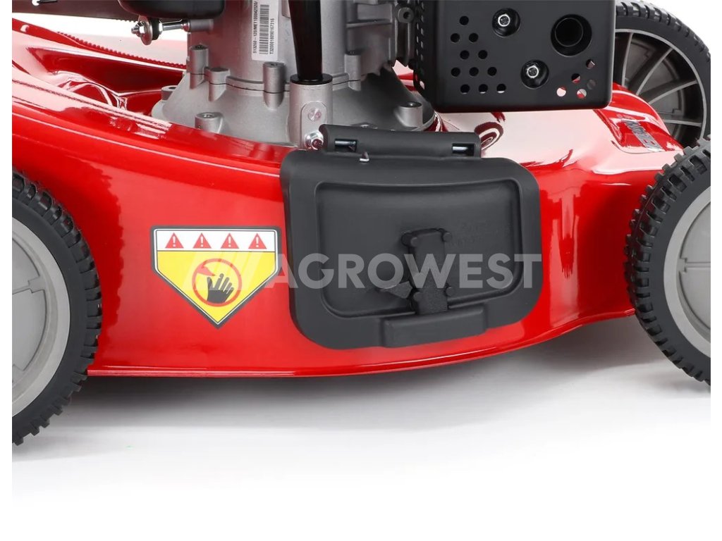 Ergonomická rukojeť s ovládacími prvky otáček motoru a speciální povlak na obvodu sběracího koše, který stimuluje proud vzduchu, aby se neprášilo na obsluhu. Dále je tato sekačka vybavena pevnými zadními koly a sklopnou rukojetí pro snadné uskladnění a přepravu.