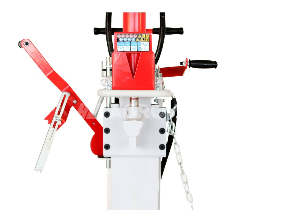 Štípačka VARI 11 TON SUPER FORCE splňuje novou normu EU pro bezpečnost práce. Ke standardnímu obouručnímu ovládání tak přibylo nové, větší ochranné rameno a transportní kolo u vodicích rukojetí pro snadný převoz štípačky. Levá ovládací páka je vybavená zařízením pro zajištění stability polena.