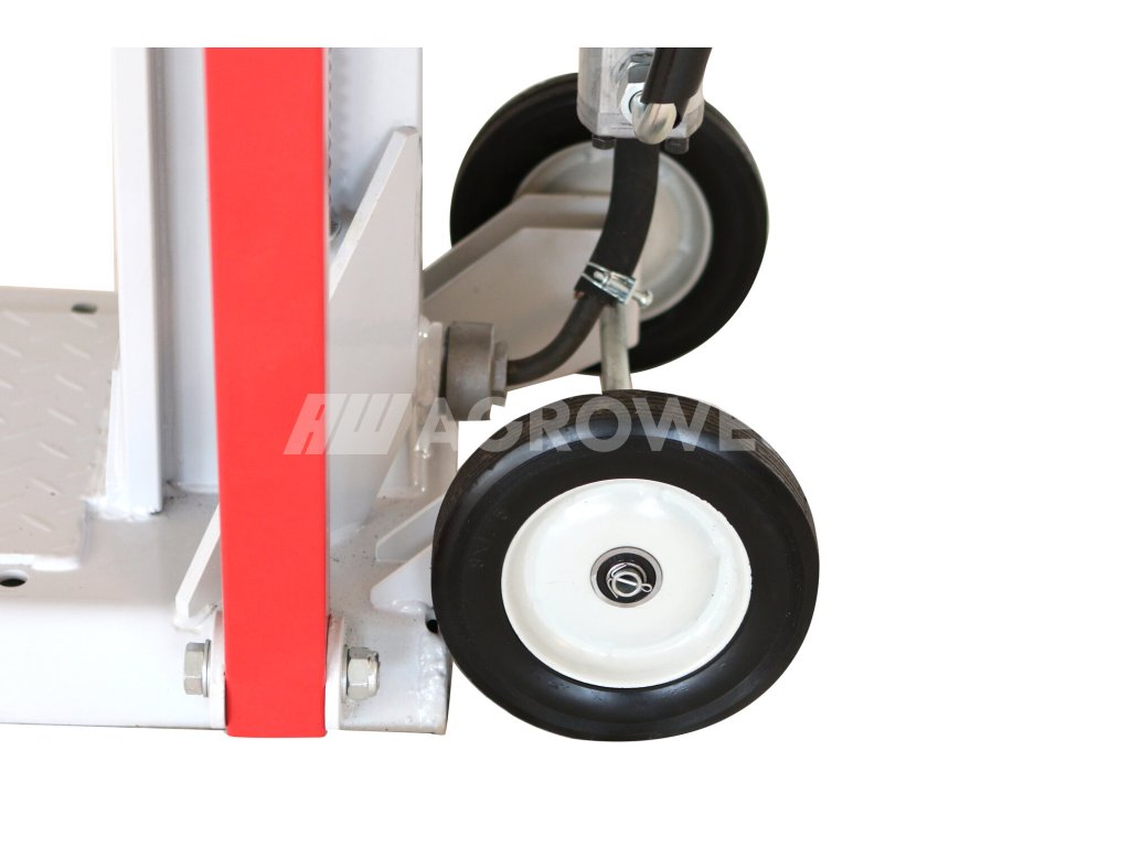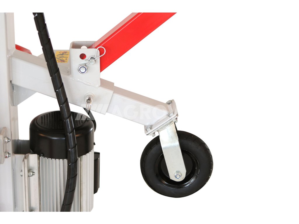 Transportní kola, třetí pomocné kolo u vodicích rukojetí, možnost snížení pístu a sklopení bočních opěr usnadňuje manipulaci se strojem a jeho skladování.