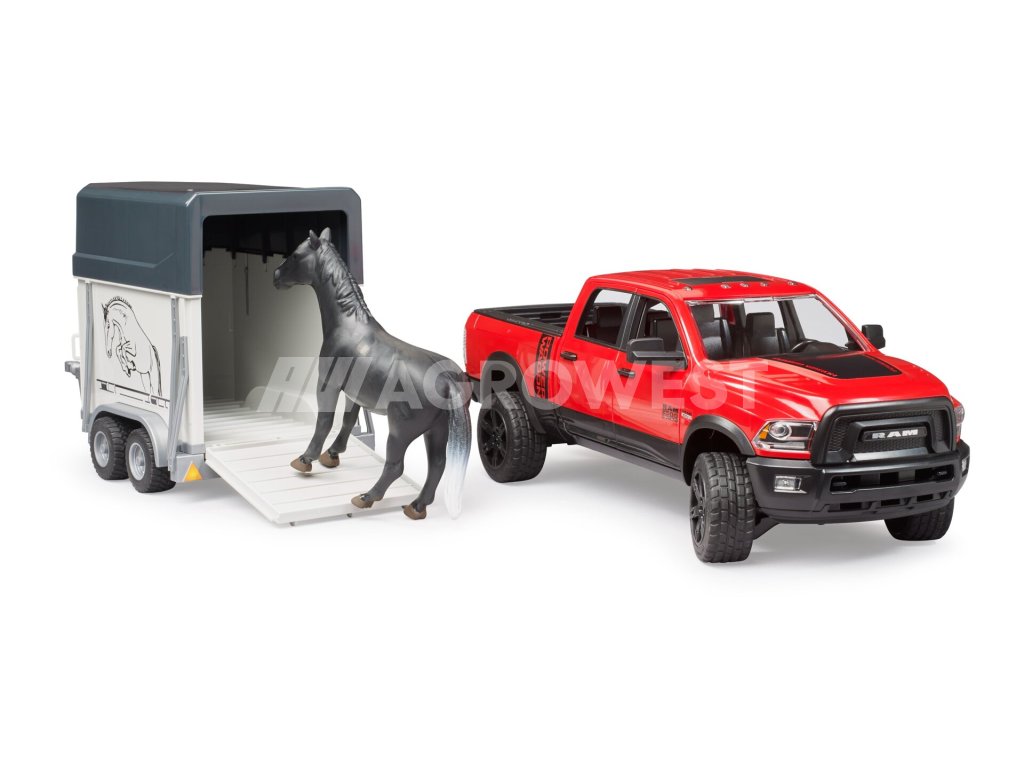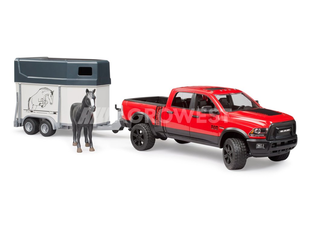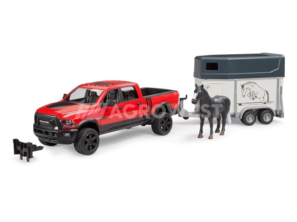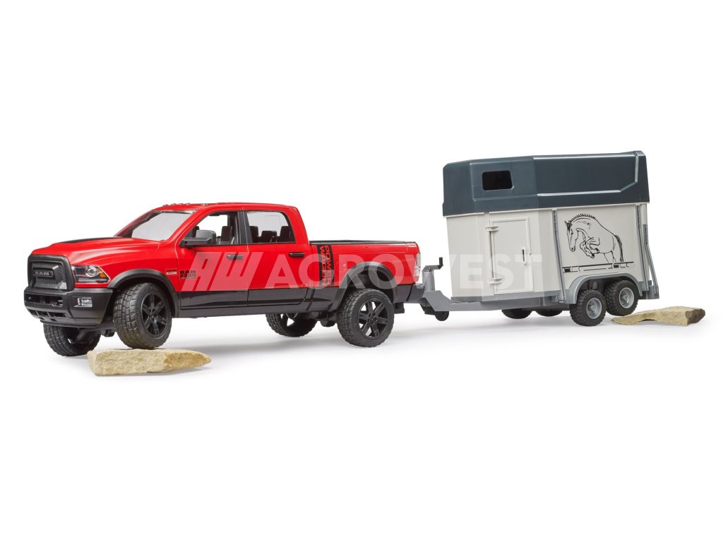 Terénní auto RAM 2500 Power Wagon s přepravníkem na koně a figurkou koně - Bruder 2501