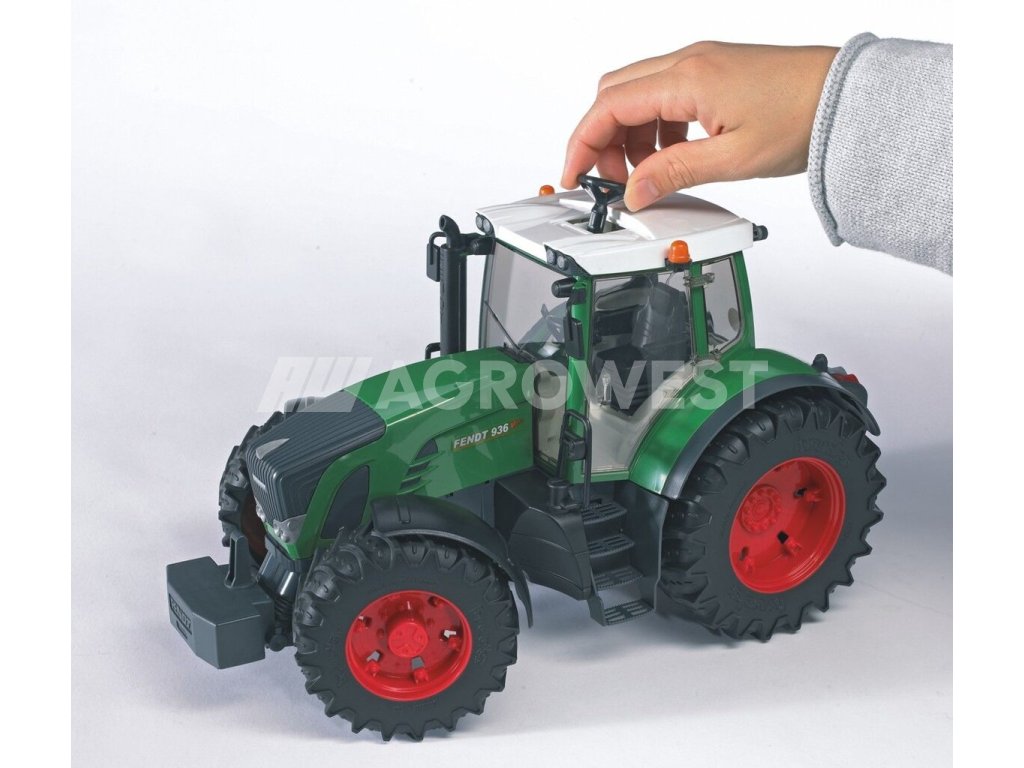 Model Fendt 936 Vario představuje mimořádně povedenou kopii slavného traktoru a nabízí nejenom detailní zpracování, ale i skvělé funkce. Traktor je vyveden v měřítku 1:16 a vyroben je z kvalitního ABS plastu. Báječnou zábavu zaručuje řiditelná náprava, kterou lze pohodlně ovládat otvorem v posuvné střeše. Traktor je dále vybaven otevíracími dveřmi a kapotou motoru, závěsným zařízením se zdvihacím mechanismem a odnímatelným čelním závažím. Kabina je zasklená speciálním polykarbonátem, který se vyznačuje vysokou odolností proti nárazu. Pro ještě větší požitek z jízdy je možné připojit k traktoru jakýkoli přívěs z edice Profi Bruder, kompatibilní je i s dalším příslušenstvím téže značky včetně figurek z kolekce Bworld.