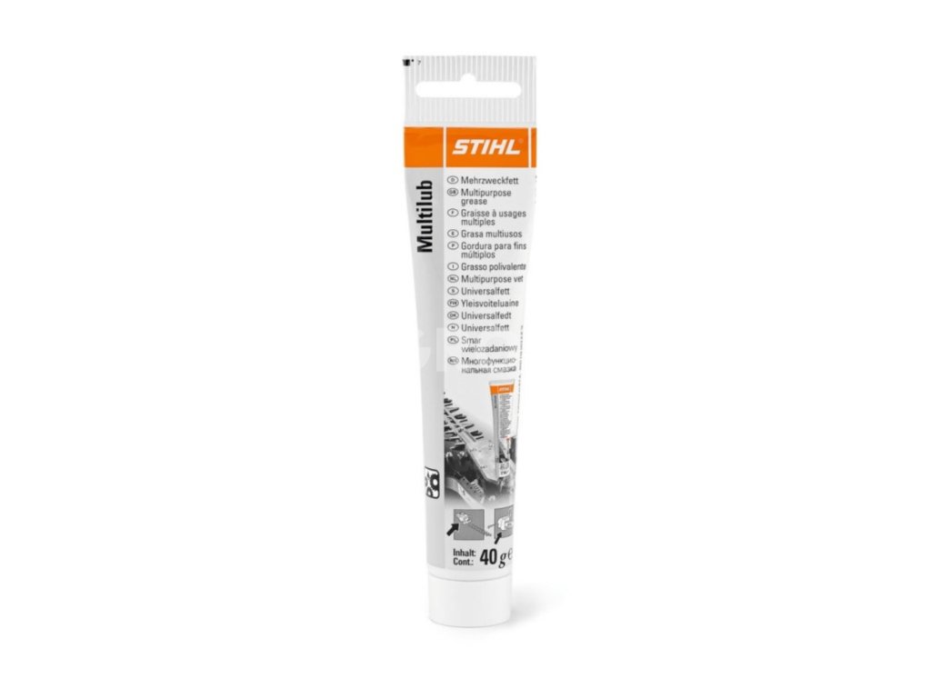 Víceúčelové mazivo STIHL Multilub účinně snižuje opotřebení. Po delším používání nůžek na živý plot STIHL nebo elektrické řetězové pily STIHL může dojít k opotřebení v důsledku tření v převodovce. Speciální aditiva maziva Multilub a optimálně nastavená konzistence mají za úkol tomu zabránit. Mazivo má velmi dobrou přilnavost i v odkrytých částech převodovky a zajišťuje tak delší životnost vašich přístrojů.