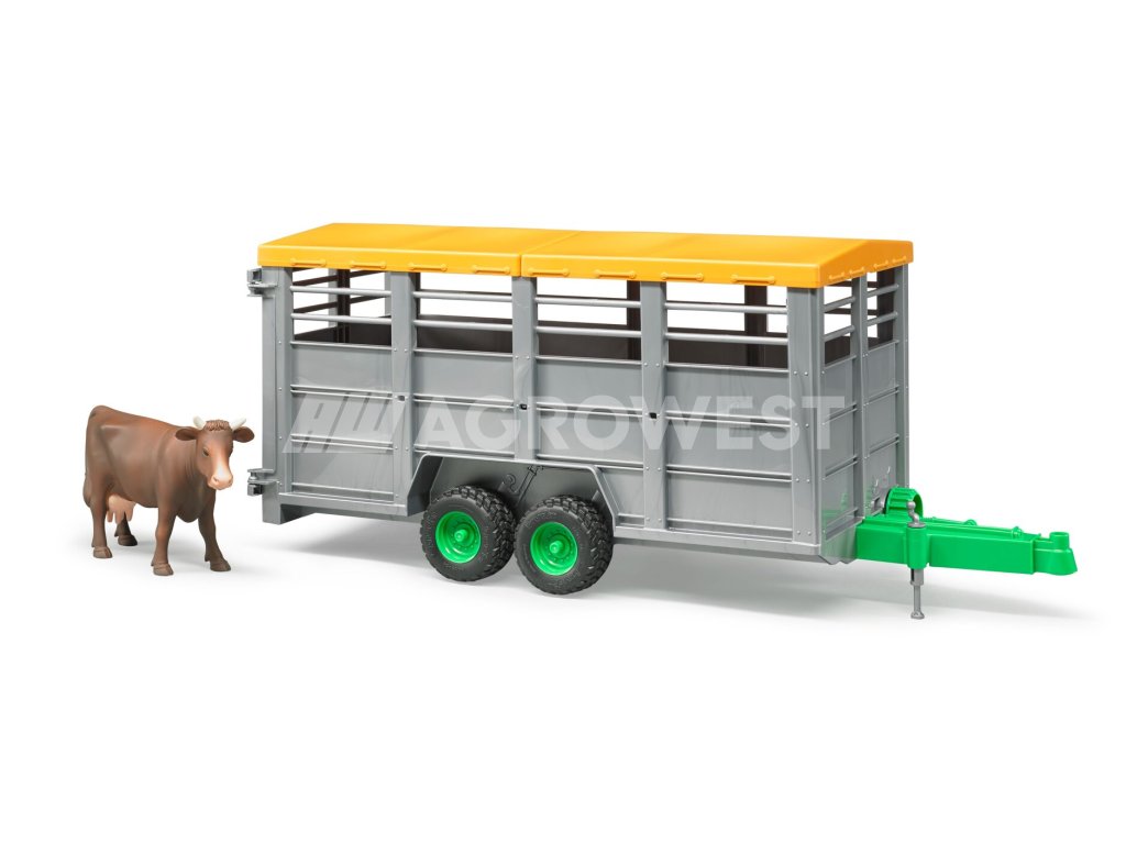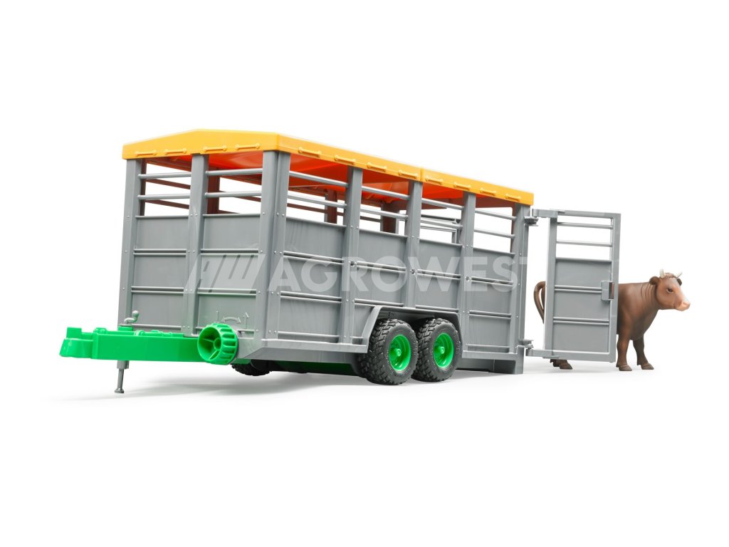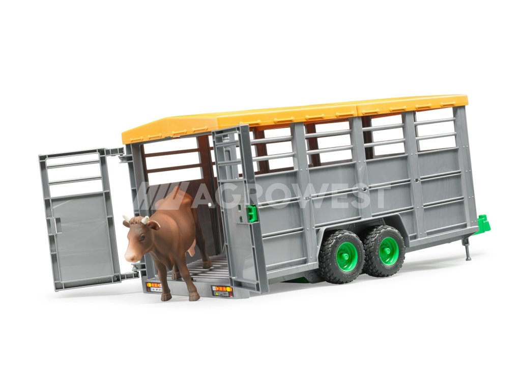 Ideální přepravní prostředek pro přesun dobytka z farmy vašeho malého farmáře na pastvinu. Dveře lze snadno otevřít a vypustit zvířata. Jedna kráva je již součástí balení, přívěs má však prostor až pro 6 zvířat a je možné ho zapojit za všechny traktory Bruder.